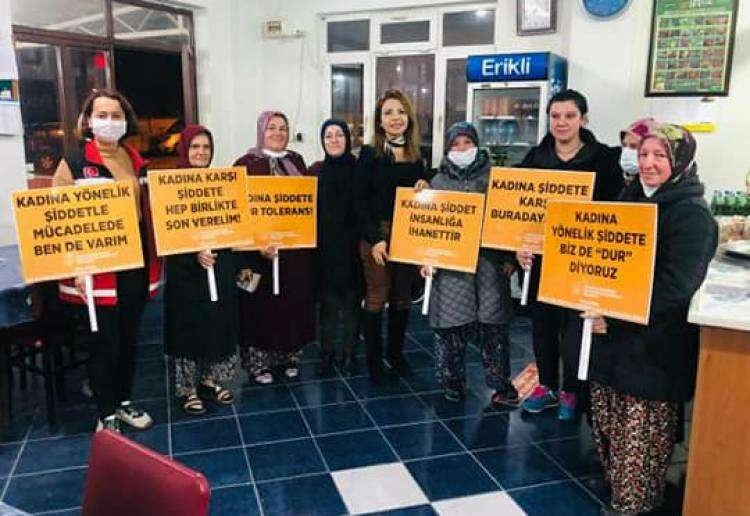 Geyikdere Köy Muhtarı Emine Türker ile Yalova Aile ve Sosyal Hizmetler İl Müdürlüğü işbirliğinde Geyikdere Köyü’nde, kadınlara yönelik şiddetle mücadele farkındalık etkinlikleri düzenlendi. Köydeki kahvehanelere de konuk olan kadınlar burada kadına yönelik şiddetle mücadelede erkeklerin rolünün önemine dikkat çektiler. Etkinliklerde ayrıca kadına yönelik şiddetle mücadele kapsamında Yalova Aile ve Sosyal Hizmetler İl Müdürlüğü tarafından sunulan hizmetler, 6284 SK, KADES Uygulaması ve şiddetle mücadeleye ilişkin muhtarlarla yapılan çalışmalar hakkında da bilgiler verildi.