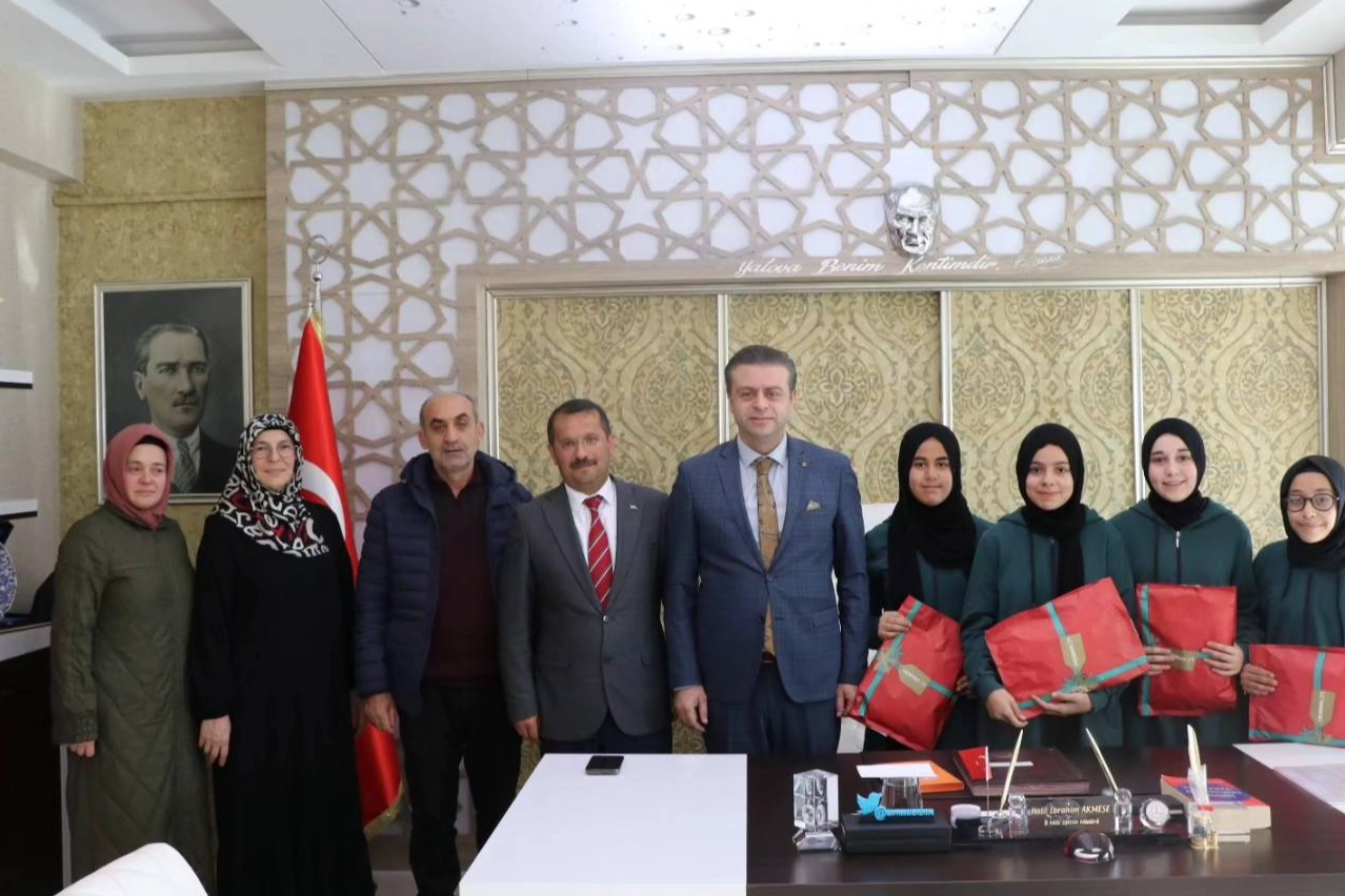 Yalova Hafız Kız İmam Hatip Ortaokulu’nda örgün eğitimle beraber hafızlık projesini yürüten dört öğrenci, Yalova Milli Eğitim Müdürü Halil İbrahim Akmeşe’yi ziyaret etti. Akmeşe, hafızlık eğitimlerini tamamlayan öğrencileri kutladı ve hafızlığın önemine vurgu yaptı.