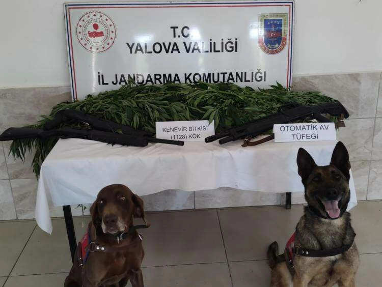 Edinilen bilgiye göre, Yalova İl Jandarma Komutanlığı İstihbarat Şube ve Çiftlikköy İlçe Jandarma Komutanlığı ekipleri, Kılıç köyünde bulunan mısır tarlasına operasyon düzenlendi. Şüphelere ait ev ve mısır tarlasında narkotik dedektör köpeklerin de katılımıyla arama gerçekleştirildi. Aramada bin 128 kök Hin keneviri, 3 adet ruhsatsız otomatik av tüfeği, 29 adet av tüfeği fişeği ele geçirildi. Operasyonda gözaltına alınan F.Y ve T.B'nin jandarmadaki işlemleri devam ediyor.