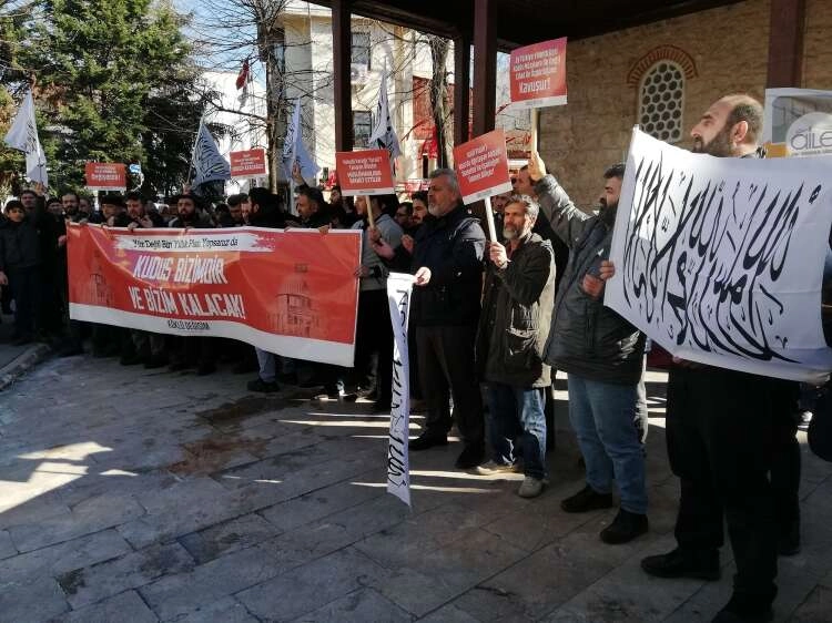Amerika’nın Kudüs’ü işgal ve Filistin’i adeta yok etme çabaları içeren tek taraflı sözde barış planına toplumun her kesiminden tepkiler geliyor. Kudüs’ün 3 semavi din açısından da kutsal bir yer olduğunun hatırlatıldığı açıklamada İsrail’in Filistinli Müslümanları yok ederek Kudüs’ü ve Filistin topraklarını işgal çabalarına lanet yağdı. Köklü Değişim tarafından yapılan açıklamada, “Ey Müslümanların Başlarındaki Yöneticiler! Yıllardır Filistin'e yapılan saldırılar, kardeşlerinizin canlarına, mallarına, kutsallarınıza ve dininize yapılmış saldırılar değil midir? Kadınların çığlıkları, çocukların gözyaşları, annelerin feryatları ve şehitlerin kanları sizleri harekete geçirmek için yeterli değil midir? Kâfirlerin hayatı sevdiği kadar şahadeti seven askerlere, kışlalarda atıl bekleyen yığın yığın silahlara ve uçsuz bucaksız servetlere sahipken daha ne kadar bekleyeceksiniz? Amerika'nın ve Yahudi Varlığı'm bu küstah tavırlarından, bu pervasız açıklamalarından ve fitne dolu planlarından hiç mi rahatsız olmuyorsunuz? Allah için söyleyin, Rasulullah Sallallahu Aleyhi Vesilemin İsra ve Miraç toprağına sahip çıkmayacak mısınız? Söyleyin! Niye ve neden susuyorsunuz? Kimden ve neden korkuyorsunuz? Kafirlerin örümcek ağı gibi zayıf olan düzenlerinden mi? Oysa ki onlar sadece sizin korkunuzdan besleniyorlar. Sizler korktukça onlar küstahlaşıyorlar. Sizlerin durumunu Hizb-ut Tahrir'in kurucusu Şeyh Takiyuddin en Nebhani ne güzel tarif etmiş: ‘İsrail' Arap rejimlerinin gölgesidir, o rejimleri kaldırdığın an gölge de gider." Buradan Kafir Amerika'ya ve O'nun Küstah Başkanı Kafir Trump'a da Sesleniyoruz! Müslümanların başındaki işbirlikçi yöneticilerin sessizliği, acziyetleri ve hiçbir işe yaramayan etkisiz kınama mesajları seni aldatmasın! Zira biz Müslümanların Kudüs'e olan bağlılığı, bu hain yöneticilerinki gibi değildir? Dolayısıyla yaptığın şer planlarında bu büyük ve önemli ayrıntıyı sakın unutma! Evet Müslümanlar! Buradan bir kez daha Kudüs için şeytani plan yapan herkese tekrar hatırlatıyoruz! Sizlerin Kudüs'e ve Mescid-i Aksa'ya olan sadakatimiz "Mukaddes belde Filistin'den bir karış dahi toprak vermektense vücudumun lime lime doğranmasını yeğlerim’ diyen Halife Abdulhamid'in sadakati gibidir. Bizim Kudüs'e ve Mescid-i Aksa'ya olan sadakatimiz, Mescidi Aksa'nın kapısında ölene kadar nöbet tutan son Osmanlı Hilafet Devleti'nin askeri Hasan Onbaşının sadakati gibidir! İşte bizim sadakatimiz böyle bir sadakattir. Özlemimiz ise Kudüs işgal altındayken bir Müslüman nasıl gülebilir? Nasıl rahat uyuyabilir diyen Selahaddin Eyyübi'nin özlemi gibidir!