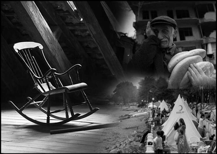 Hemen telefona sarıldım. Kimi aradığımı bile hatırlamıyorum. Korkudan yalnızca beni kurtarın diye bağırıyordum. Sonra tekrar içeri koştum. Sarsıntıdan tüm eşyalar yere yığılmıştı; adeta ortalık savaş alanı gibiydi. Ayağımda derin bir kesik, kan kaybediyordum. Keşke bir deprem çantası hazırlamış olsaydım. Korna sesleri siren seslerine karışmıştı. Her geçen dakika ölüme biraz daha yaklaşıyordum. Korkudan ne yapacağımı bilemiyordum. Uzun bekleyişin ardından arama kurtarma ekibi pencerede belirmişti. Hızlıca beni, itfaiye aracı yardımıyla aşağıya indirdiler. Ayağıma pansuman yapılıyordu ve ben nihayet canımı kurtarmıştım. Çevrede yıkılan binaları izliyordum. Kaçışan insanları, yitirilen yaşamları…İzledikçe hatırlıyor, güçsüzleşiyordum. Akşama kadar tanıdığım tüm insanlara ulaşmaya çalıştım ancak tüm telefonlar kapalıydı. Binalar yıkılmış ve çoğu arkadaşım enkaz altında kalmıştı. Ne kalacak bir yerim ne de bir yakınım kalmıştı. Herkes yabancı… Yapayalnızdım… Akşama doğru yetkililer; Eskiden merkeze en yakın mesafede olan Arboretum arazisine kurulan deprem çadırlarının, şimdi Yalova Atatürk Bahçe Kültürleri merkez Araştırma Enstitüsü arazileri üzerine yeni yapılan millet bahçesine kurulacağını söylediler. Nihayet başımı sokacağım bir yerim olacaktı. Ancak beni oraya götürecek kimse yoktu ve kesik ayağımla o kadar yolu yürüyemezdim. Tam da o sırada bir araç zorlandığımı fark ederek yaklaşıp beni gideceğim yere götürebileceğini söyledi.