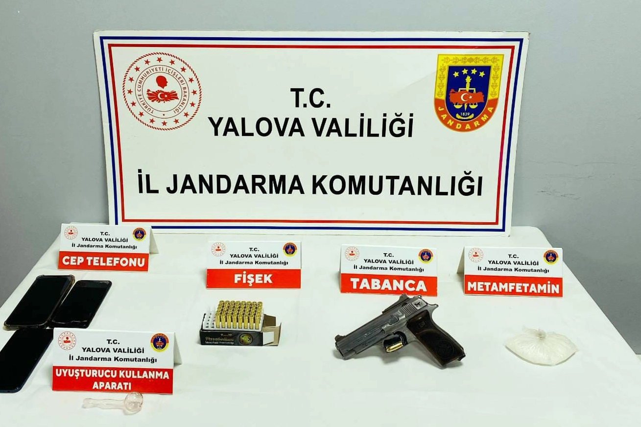 Yalova Jandarması ilimize uyuşturucu madde sevk ederek halkı zehirlemeyi amaçlayan zehir tüccarlarına darbe vurdu. Edinilen bilgiye Kirazlı yol kontrol noktasında şüpheli bir araç durdurularak arama yapıldı. Araçta bulunan M.K., T.O. ve C.B. adlı şahısların üzerlerinde ve araç içerisinde yapılan aramada, 75 gram metamfetamin, 1 adet uyuşturucu kullanma aparatı, 1 adet tabanca ve 45 adet tabanca fişeği ele geçirildi. Şüpheliler, jandarma ekipleri tarafından gözaltına alınarak, haklarında yasal işlem başlatıldı. Sanıklar sorgularının tamamlanmasının ardından tutuklanma talebi ile adliyeye sevk edilecekler