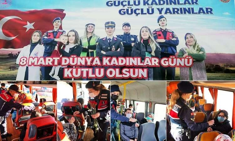 Kadınlara çiçek dağıtıldı Öte yandan Yalova Jandarma Komutanlığı ekipleri durdurdukları araçların içerisindeki kadınlara çiçek hediye ederek Dünya Kadınlar Günü’nü kutladılar. Jandarmayı ellerinde çiçeklerle gören kadınlar ise şaşkınlıklarını gizleyemediler. Jandarmalara teşekkür eden kadınların mutlulukları da gözlerinden okundu.