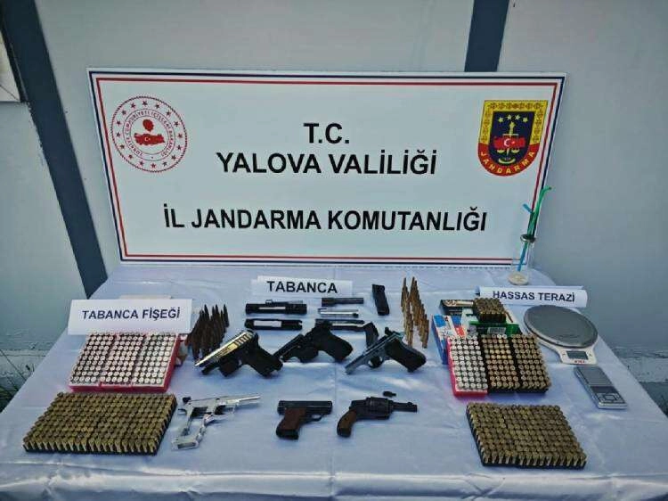 Yalova’nın Çiftlikköy ilçesine bağlı Taşköprü Beldesi’nde bulunan sanayi sitesi içerisinde kurusıkı silahların namlusunun değiştirilerek silaha dönüştürüldüğü istihbaratını alan Yalova Jandarma Komutanlığı belirlenen adrese operasyon düzenledi. E.G. isimli şahsa ait iş yerinde yapılan aramada, 4 adet tabanca, 2 adet kurusıkı tabanca, bin 110 adet tabanca mühimmatı, 57 adet tüfek mühimmatı, 34 adet tabanca parçası, 1 adet uyuşturucu kullanma aparatı ve 2 adet hassas terazi bulundu. E.G., jandarma ekipleri tarafından yakalanarak gözaltına alındı. Şüpheli, hakkında yasal işlem yapılmak üzere adli makamlara sevk edildi.