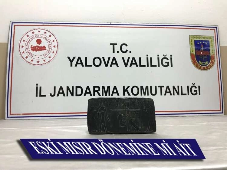 Eski Mısır dönemine ait bir tarihi eseri satmak için alıcı arayan şahsın olduğu bilgisine ulaşan Yalova Jandarması alıcı kılığında şahısla irtibata girdi. Şahısla bir süre pazarlık yapan ekipler ardından anlaşarak buluşma yeri ayarladılar. Yalova’nın Altınova ilçesine bağlı Tavşanlı beldesinde bulunan feribot iskelesinde S.U aflı şahısla buluşan ekipler şahsın eseri çıkartması sonrasında operasyon gerçekleştirdiler. Şahıs gözaltına alınırken konuyla ilgili tahkikat başlatıldı. Eserin eski Mısır dönemine ait olup olmadığı ise gerçekleştirilecek inceleme ile tespit edilecek.