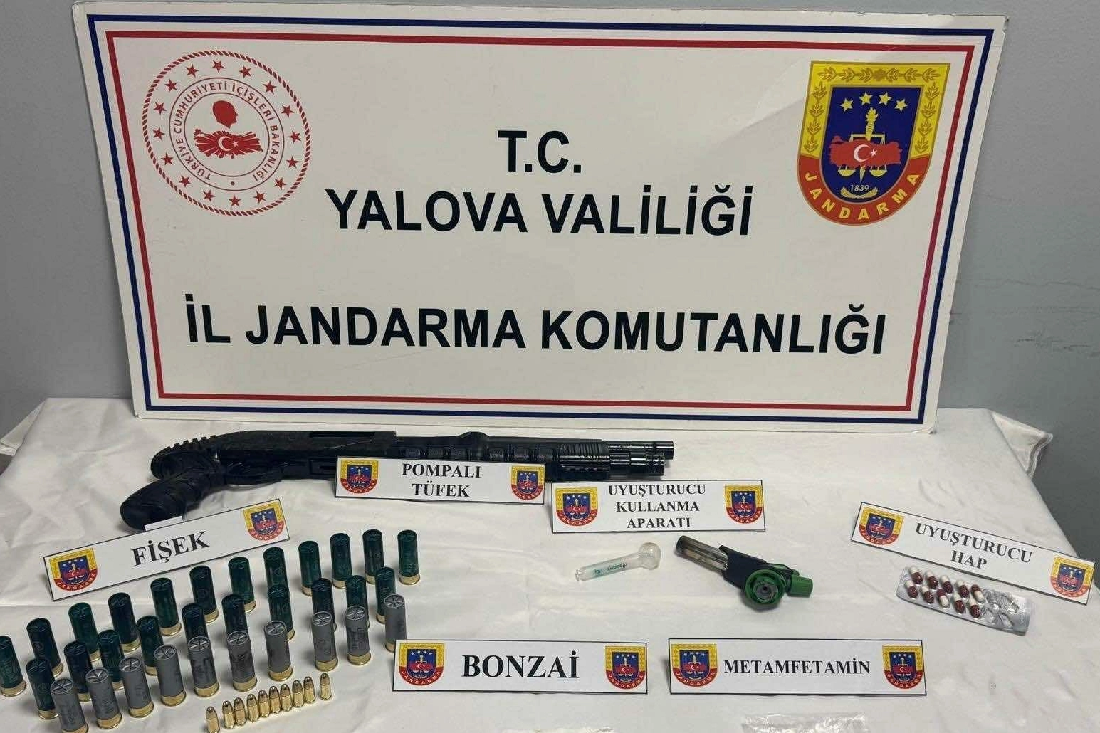 Merkez İlçe Jandarma Komutanlığı ekipleri tarafından Safran Köyü yakınlarında durdurulan araçta yapılan aramada 30 gram metamfetamin, 2 gram esrar, 10 adet sentetik hap, 1 adet uyuşturucu kullanma aparatı, 1 adet pompalı tüfek ve 32 fişek, 10 adet 9x19 mm fişek ele geçirildi.