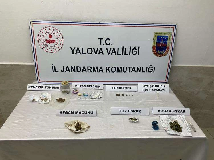 Yalova Jandarma Komutanlığı Kaçakçılık ve Organize Suçlarla Mücadele Şubesi aldığı bir istihbarat neticesinde çalışmalara başladı. Verilerin toplanması sonrasında düğmeye basan jandarma ekipleri Kılıçköy’de Y.B (41) adlı şahsın evine baskın düzenledi. Şahsın evinde ve aracında yapılan aramada 150 gram uyuşturucu madde bu maddeyi kullanmaya yaradığı düşünülen aparatlar ve Osmanlı dönemine ait 5 adet sikke ele geçirildi. Y.B adlı şahıs gözaltına alınırken, ele geçirilen sikke ve uyuşturuculara da el kondu. Şahıs yapılan sorgulamanın ardından tutuklanma talebi ile adliyeye sevk edilecek.