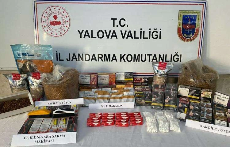 Yalova Jandarma Komutanlığı ekipleri kendi sorumluluk alanlarında kalan bölgelerde suçla ve suçlularla mücadeleyi sürdürüyor. Bu kapsamda yapılan çalışmalar neticesinde ilde çok sayıda uyuşturucu madde ile kaçak tütün ve makaron ele geçirildi. Yalova Jandarma Komutanlığı tarafından yapılan açıklamada, “Yalova İl Jandarma Komutanlığınca 2022 yılı Nisan ayı içerisinde Uyuşturucu, Kaçakçılık, Göç ve Siber Olaylarına yönelik yapılan operasyonlar sonucu; 443 gr uyuşturucu ve uyarıcı madde, 205 kök kenevir, 19 kg açık tütün, 191 bin 472 adet makaron, 27 kg nargile kömürü, 18 kg nargile tütünü, 1 adet av tüfeği ve 1 adet kurusıkı tabanca ele geçirildi. Bu olaylara karıştığı tespit edilen 15’i yabancı uyruklu, 90 şahsa adli ve idari işlem yapılırken, 15 yabancı şahıs ise Yalova İl Göç İdaresi Müdürlüğüne teslim edildi. Yalova İl Jandarma Komutanlığı başta uyuşturucu madde, kaçakçılık ve organize suçlar olmak üzere tüm suç ve suçlularla mücadeleye kararlılıkla devam edecektir” denildi.