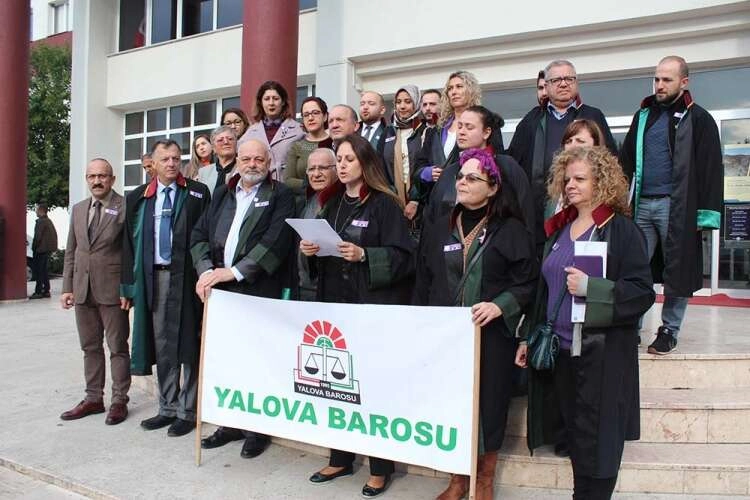 Kadına Yönelik Şiddete Karşı Uluslararası Mücadele Günü dolayısıyla Yalova Adliyesi önünde toplanan Yalova Barosu’na bağlı avukatlar bir basın açıklamasın yaptılar. Baro adına açıklamayı Yalova Barosu Yönetim Kurulu Genel Sekreteri ve Kadın ve Çocuk Hakları Komisyonu Başkanı Elif Turnacı Çavuş okudu. Kadına yönelik şiddetin son yıllarda büyük artış yaşadığı üzerinde durulan açıklamada şu sözlere yer verildi, “Bu gün 25 Kasım Kadına Yönelik Şiddete Karşı Uluslararası Mücadele Günü. Son yıllarda ülkemizde kadınlara yönelik şiddet olayları %1400 oranında artış göstermiştir. Son 3 yılda 1391 kadın öldürüldü.982 kadın tecavüze uğradı, 981 şiddet vakası yaşandı. Bu istatistikler sadece adli mercilere intikal eden rakamlar, gizlenen, üstü kapatılan, meşru sayılan olaylarda eklendiğinde çok vahim bir tablo ile karşı karşıyayız kadına yönelik şiddet ve cinayet vakalarındaki artışa rağmen, bu haberlerin basında yer alma süreleri her gün kısalmakta, bu olaylar sıradanlaştırılarak, toplumsal tepki azalmaktadır. Her kadın cinayetinden sonra yaşanılanlar kınanmakta ancak somut hiçbir adım atılmamaktadır. Her 25 Kasımda olduğu gibi bir kez daha, bir can daha yanmadan bu büyük sorunun çözümü için yapılması gerekenleri tekrarlıyoruz; Ülkemizin ilk imzayı attığı İstanbul Sözleşmesi ivedilikle uygulanmalı, sözleşme ile ilgili olumsuz algı yaratma çabalarının önüne geçilmelidir. 6284 Sayılı Yasa İstanbul Sözleşmesine göre edilmeli refize giderilmelidir. Sorunları uygulama Toplumsal bakış açısının değiştirilerek farkındalık yaratılması için başta siyasiler olmak üzere söylemlerde cinsiyetçi ifadeler kullanılmamalı, toplumsal eşitlik sağlanmalıdır. Eğitim müfredatı kadın erkek eşitliğine uygun hale getirilmelidir. Tüm kamu çalışanları başta olmak üzere toplumun her kesimine toplumsal cinsiyet eşitliği eğitimi verilmelidir. Aile içi şiddet ve cinayetlerde indirim maddeleri uygulanmayarak, faile verilen cezalar caydırıcı olmalıdır arttırılarak suç mağdurlarının korunması sağlanmalıdır. Yasaların uygulanmasındaki sorunlar aşılmalı, kadın sığınma evleri Kadının iş hayatına katılımının arttırılması için ücretli doğum izni süresi en az 6 ay olarak düzenlenmeli, is yerleri kreşlerinin açılması sağlanmalıdır. Unutulmamalıdır ki; toplumun temelini inşa eden kadınlardır Yalova Barosu olarak; kadına karşı şiddetle mücadelede tüm kadınlarımızın yanında olduğumuzu kamuoyuyla paylaşır, bu konuda atılacak adımlar için tüm sorumluları göreve davet ediyoruz”