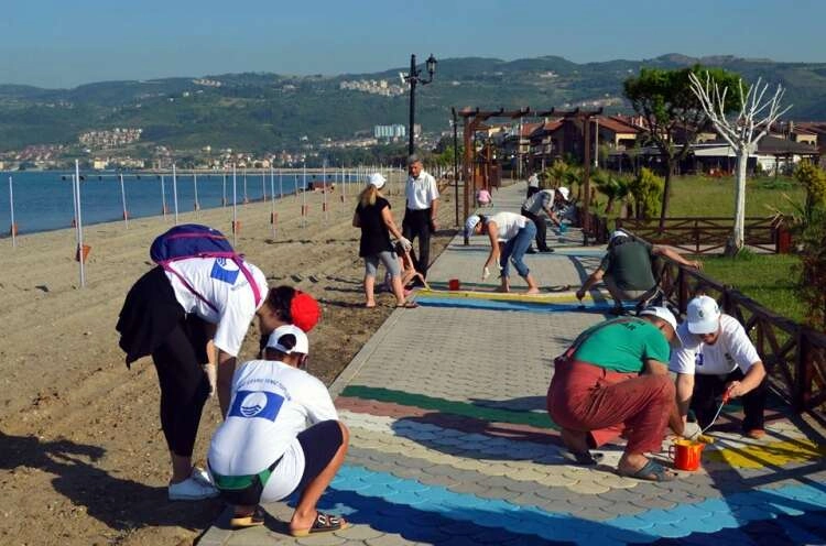 Ramazan ayı sonrasında açılacak olan plajın yürüyüş yolu vatandaşlarında katıldığı etkinlikle rengarenk boyandı.