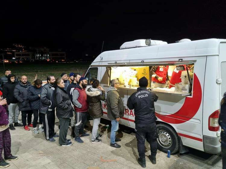 Her afette yaraların sarılması noktasında büyük bir görev üstlenen Türk Kızılay’ı tüm birimleri ile depremin vurduğu illerde görev yapıyor. Bu çerçevede Kızılay Yalova Şubesi ekipleri de Hatay ve İskenderun illerinde görev yapmaya başladı. Seyyar araçla depremden etkilenen vatandaşlara ve burada görev yapanlara sıcak yemek dağıtan ekip, gece gündüz demeden çalışıyor. Kızılay Yalova Şubesi Başkanı Selvet Duman, “Ekibimiz depremin vurduğu illerimizden Hatay ve İskenderun da görev yapıyorlar. Burada seyyar araçla depremzedelerimize sıcak yemek veriyoruz. Ayrıca şu ana kadar 600 adet meyve suyu, bin 500 bardak sıcak çay 700 adet kek ve 700 adet de bisküvi dağıttık. Kızılay Yalova Şubesi olarak depremzede vatandaşlarımıza hizmet etmeyi sürdüreceğiz” diye konuştu.