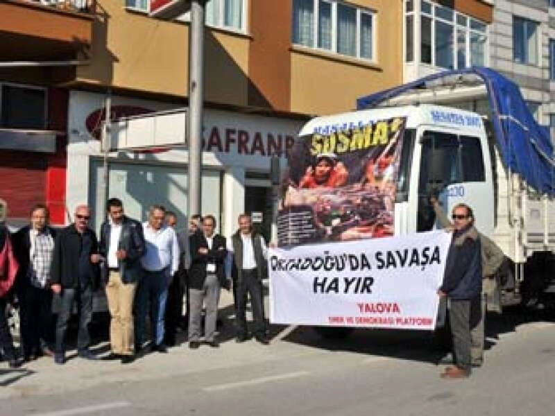 Yalova Emek ve Demokrasi Platformu tarafından düzenlenen yardım kampanyasında toplanan gıda maddesi kamyonla Urfa'nın Suruç ilçesine gönderildi. IŞİD Suriye'nin Kobani bölgesine yaptığı saldırılarla bir çok insanı öldürmüştü. Bu saldırıdan korkan Ezidi Kürtler ise Türkiye sınırına dayandı. Burada ki Kürtlerin gıda ihtiyacına cevap vermek için Yalova'da da bir yardım kampanyası düzenlendi. Yalova Emek ve Demokrasi Platformu tarafından düzenlenen yardım kampanyasında 19 ton un kamyona yüklenerek Şanlıurfa'nın Suruç ilçesine gönderildi. Gıda maddelerinin uğurlanması esnasında 22 STK'dan oluşan platform adına bir açıklama yapan Platform Sözcüsü Ferhat Apsin, "Bilindiği üzere 2 Ağustos 2014 gece yarısı Irak'ın Sincar Dağı eteklerinde yaşayan on binlerce Ezidi Kürt, tıpkı Şii Arap ve Şii Türkmenler, Alevi Araplar, Hırıistiyanlar, Ermeniler gibi emperyalist ve gerici güçlerin maşası IŞİD çeteleri tarafından katledilmiş binlerce kadın kaçırılmış adeta soykırım uygulanmıştır. Katliamdan sağ kurtulanlar, evinden yalınayak, sırtlayabildiği küçük çocuğu yaşlısıyla Şengal Dağına kaçabilmiş, günler sonra Türkiye sınırına dayanmıştır. Öte yandan IŞİD çetelerinin özellikle bir kaç gündür Rojava-Kobane'yi hedef alan saldırıları tüm hızıyla sürmekte, saldırılardan kaçan ve Urfa Suruç'a geçen halkların dramı gittikçe ağırlaşmaktadır. Yalova ilimizde de, Yalova Emek ve Demokrasi Platformu olarak başlaştığımız yardım kampanyasına halkımızın ilgisi büyük olmakla beraber, yapacağımız yardımların miktarlarının fazla olması hayati önemdedir" dedi. Ardından alkışlar eşliğinde kamyona yüklü gıda maddeleri Yalova'dan Şanlıurfa'ya yola çıktı.