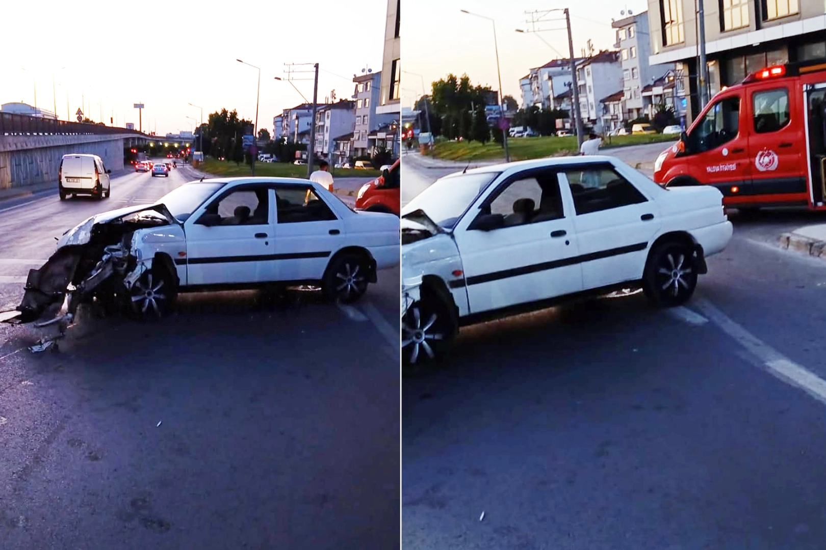 Yalova’da, Bursa yolu ile Şehit Bihicarettin Caddesi’nin kesiştiği noktada meydana gelen trafik kazasında, henüz belirlenemeyen bir nedenle kontrolden çıkan otomobil, çelik bariyerlere çarparak savruldu. Kazanın etkisiyle araç metrelerce sürüklenirken otomobilde ağır maddi hasar oluştu. Sürücü kazayı hafif yaralı olarak atlattı. İhbar üzerine kısa sürede olay yerine ulaşan Yalova İtfaiyesi ekipleri ve sağlık ekipleri sürücünün sağlık durumunu kontrol etti. Ardından trafik ekiplerine bilgi verilerek yol güvenliği sağlandı. Kazanın meydana geldiği Şehit Bihicarettin Caddesi’nde trafik bir süreliğine dururken, aracın bir vinç vasıtası ile çekilmesi sonrasında trafik akışı normale döndürüldü. Kazayla ilgili inceleme başlatıldı.