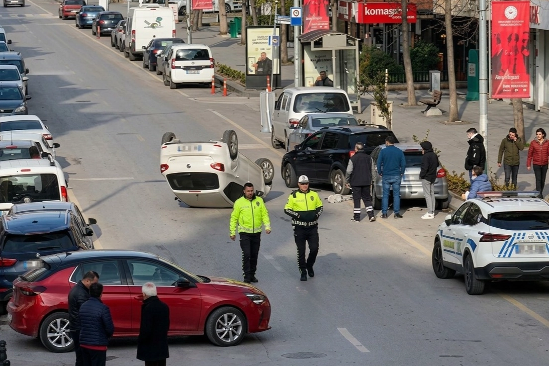 Yalova merkezinin ana arterlerinden biri olan Fatih Caddesi, öğle saatlerinde korku dolu anlara sahne oldu. Seyir halindeki bir otomobil, henüz belirlenemeyen bir nedenle sürücüsünün direksiyon hakimiyetini kaybetmesi sonucu kontrolden çıkarak takla attı. Yolun ortasında ters dönerek durabilen araç, çevredekilerin büyük panik yaşamasına neden oldu. Kazanın meydana geldiği anlarda caddenin kalabalık olması facianın eşiğinden dönüldüğünü gözler önüne sererken, araç sürücüsü ters dönen otomobilden vatandaşların yardımıyla çıkarıldı.
