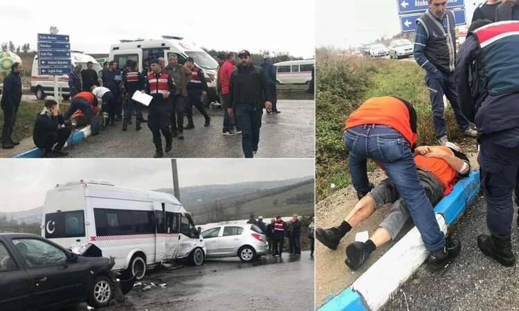 Edinilen bilgiye göre S.K yönetimindeki 77-AP-237 plakalı otomobile Çınarcık ilçesi Çalıca Kalıcı Konutları’ndaki bir okula eğitim vermeye giden MAG üyeleri Çalıca sapağında yavaşladılar. Bu esnada aynı yönde giden M.C yönetimindeki 77-AB-872 plakalı yolcu minibüsü ise konutlar yönüne dönmek için direksiyon kırdı. Otomobil bir anda önüne çıkan aracı fark ederek frene bassa da yolun yağış nedeniyle kaygan olmasından dolayı duramayarak minibüse yandan çarptı. Kazada otomobilde bulunan S.K, E.A, A.K ve H.Y ile yolcu minibüsünde bulunan Ü.D adlı yolcular yaralandı. Olay yerine çağrılan ambulanslarla Yalova Devlet Hastanesi’ne götürülen yaralıların hayati tehlikelerinin bulunmadığı öğrenildi. Olayla ilgili tahkikat başlatıldı.