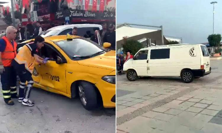 Kaza, Cumhuriyet Meydanı’nda meydana geldi. İddiaya göre, minibüsün şoförü, epilepsi krizi geçirdi. Kontrolden çıkan minibüs, ticari taksiye ve özel araca çarptı. Çarpmanın etkisiyle ticari taksi Heykel önüne savruldu. Minibüs ise Heykel önünde durabildi. Kazada ticari takside bulunan bir yolcu sıkıştı. Olay yerine ambulans ve itfaiye ekipleri sevk edildi. İtfaiye ekipleri, sıkışan yolcuyu kurtarmak için çalışma başlattı. Kazada hafif yaralanan diğer yolculara ise sağlık ekipleri müdahale etti. Kazayla ilgili soruşturma başlatıldı.