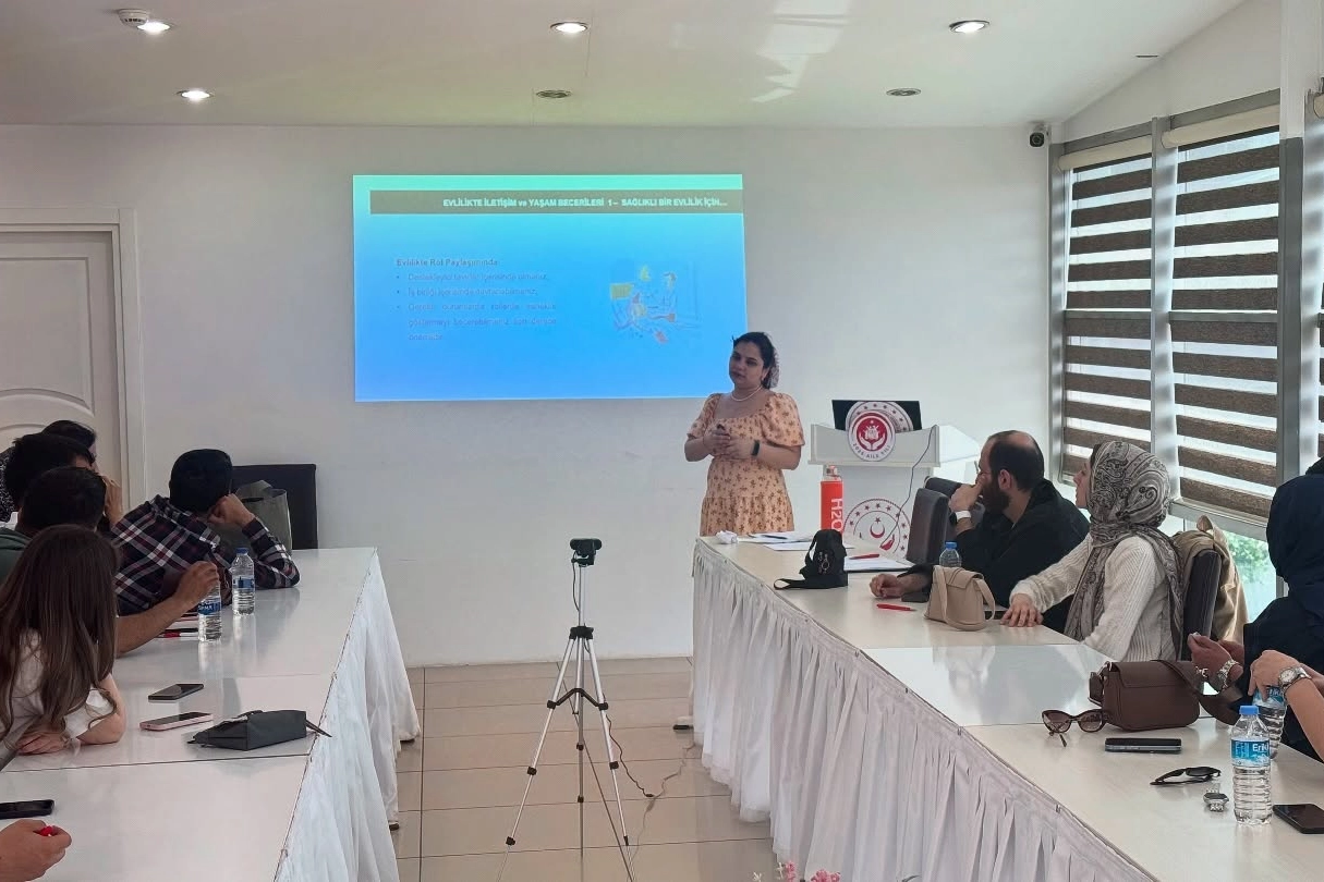 Eğitimde yeni yuva kuracak çiftlere: Etkili iletişim teknikleri, çatışma çözme beceriler, evlilikte finansal planlama, aile hukuku ve haklar, üreme sağlığı hakkında bilgiler verildi.