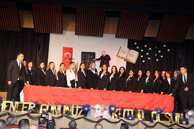 “Öğretmen geçmişin ve geleceğin imzasıdır”Günün anlam ve önemini belirten konuşmayı ise Yalova Milli Eğitim Müdürü Halil İbrahim Akmeşe yaptı. Öğretmenlerin geçmişin ve geleceğin imzaları olduğunu dile getiren Akmeşe konuşmasında, “Bilgeliğin, gelecek nesillere ufuklar açmanın, toplumları karanlıktan aydınlığa çıkarmanın, değişimin, çağdaşlığın, güvenin, başarının, hoşgörünün, dayanışmanın, sevmenin, saymanın, hayatı fark etmenin, kendini gerçekleştirmenin, bir şeyler beklemeden vermenin, beni düşünen var mı acaba diye öğrencisini rüyasında görecek kadar düşünmenin, bir harf, bir sayı öğrenildiğini görünce sevinçten uçmanın, öğrencisini iyi onunla gurur duymanın, kısaca; öğrenmenin, öğretmenin, geçmişin ve geleceğin imzasıdır öğretmen. Geleceği bugünden inşa etmenin evrensel gerçekliğinde, nesilleri her bakımdan bu yüzyılın şartlarına göre hazırlamak biz öğretmenlerin gayretleriyle hayat bulacaktır.” dedi.