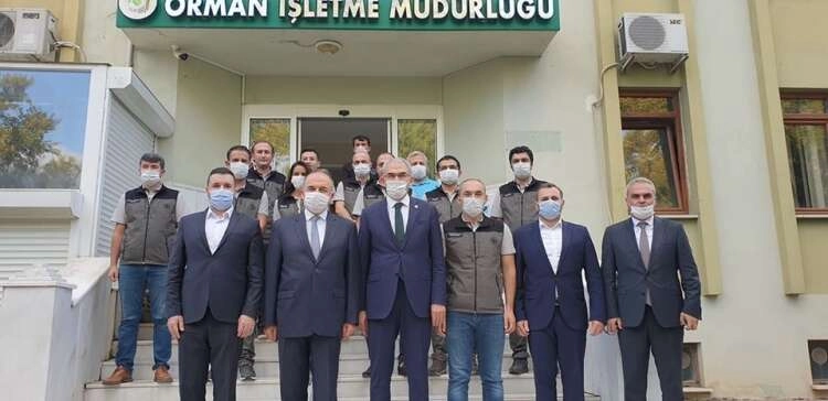 Ülkenin bir çok noktasında meydana gelen orman yangınları nedeniyle illeri ziyaret eden ve buralarda yapılan çalışmalar hakkında bilgiler alan Orman Genel Müdürü Bekir Karacabey bu kapsamda Yalova’ya geldi. Yalova Valisi Muammer Erol, Yalova Belediye Başkan Vekili Mustafa Tutuk ve AK Parti Yalova İl Başkanı Muğlim Bağatar’ın da eşlik ettiği Karacabey, Yalova Orman İşletme Müdürü Rıdvan Kaleli de bilgiler aldı. Kaleli, sorumluluk alanı ve ormanlık alanlar hakkında bilgiler verdi. Olası bir orman yangınına karşı müdürlüğün tüm tedbirleri aldığının da altını çizen Kaleli, 7 gün 24 saat vardiyalı nöbet sistemi ile ormanlık alanların gözlem altında tutulduğunu dile getirdi. Bu yıl yaşanan orman yangınlarının birçoğunun sıcak hava koşulları ve vatandaşların dikkatsizliği neticesinde çıktığını belirten Orman Genel Müdürü Bekir Karacabey özellikle vatandaşların belirlenen alanlar dışında mangal yakmalarına izin verilmemesini istedi. Orman Genel Müdürü Bekir Karacabey daha sonra Yalova Valisi Muammer Erol, Yalova Belediye Başkan Vekili Mustafa Tutuk ve AK Parti Yalova İl Başkanı Muğlim Bağatar’la bir süre daha görüş alışverişinde bulundu.