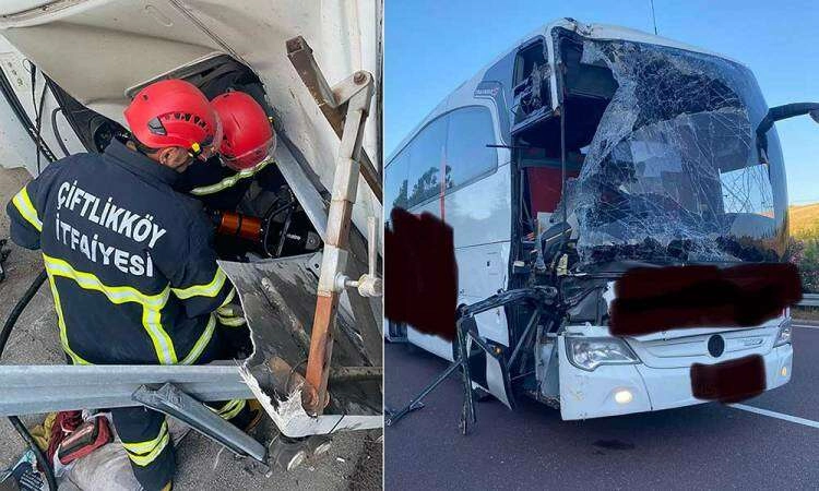 Alınan bilgiye göre, İstanbul - İzmir otobanının Yalova'nın Çiftlikköy ilçesi sınırları içinde meydana gelen kazada yolcu otobüsüyle aynı şeritte seyreden tır çarpıştı. Kazada çarpışmanın etkisiyle tır devrildi. Araçta sıkışan tır sürücüsü olay yerinde yaşamını yitirdi. Kazada yaralanan 4 otobüs yolcusu ise 112 acil servis ekipleri tarafından ambulansla Yalova Eğitim ve Araştırma Hastanesi’ne kaldırıldı. Yaralıların sağlık durumunun iyi olduğu öğrenildi.