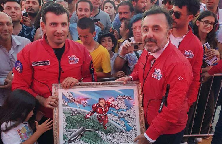 Özdemir, festivalin açılışında Baykar Yönetim Kurulu Başkanı Selçuk Bayraktar ile bir araya geldi ve kendisine illüstrasyon bir tablo hediye etti.