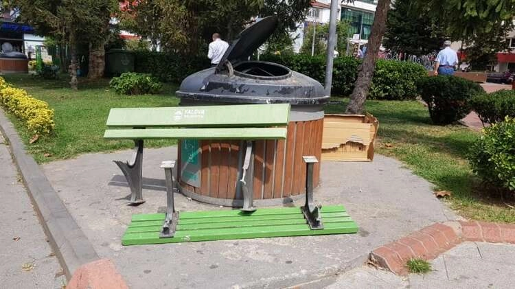 Yalova’da gün geçmiyor ki kamuya ait bir şey kimliği belirsiz kişilerin saldırısına uğramasın ve zarar görmesin. Bunlara bir yenisi daha eklendi. Kamunun ödediği vergilerle alınan ve yine kamunun kullanımı için halka açık noktalara yerleştirilen banklardan birisi kimliği belirsiz kişiler tarafından kırılarak çöpe atıldı. Cevdet Aydın Parkı’ndaki çöp depolama alanına bırakılan bankı gören vatandaşlar ise gözlerine inanamadılar. Olaya tepki gösteren vatandaşlar, “Bu bank halkın malıdır. Bunlar bizlerin vergileri ile alınan şeyler. Bir kişi kendi malına zarar verebilir bu o kişiyi ilgilendirir ve milli servettir demekten öte bir şey denemez. Ama bu bank kamu malıdır. Bunun parasını halk ödemiştir. O nedenle bu tip saldırıların ağır bir şekilde cezalandırılması gereklidir. Umarız bunu yapan kendini bilmez tespit edilir ve kanunun öngördüğü cezaya çarptırılır” dediler.