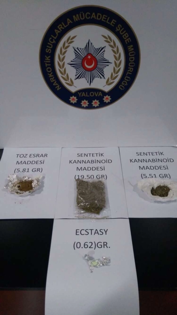 Yalova Emniyet Müdürlüğü uyuşturucu ile mücadeleyi sürdürüyor. Bu kapsamda Yalova’da gerçekleştirilen operasyonda halk arasında tobacı olarak adlandırılan S.Ç (28) ve S.G (42) adlı 2 uyuşturucu satıcısı yakalandı. Şahısların üslerinde ve evlerinde yapılan aramada ise 20.15 gram Bonzai, 5.81 gram toz esrar ve Ecstasy diye bilinen uyuşturucu maddeler ele geçirildi. Şahıslar yapılan sorgulamalarının ardından çıkartıldıkları mahkemece tutuklanarak cezaevine gönderildiler.