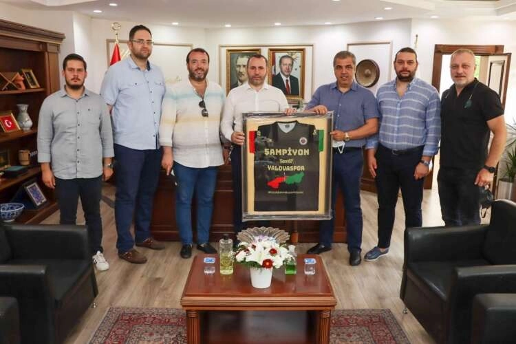 Türkiye Basketbol Ligi Play-Off şampiyonluğunu kazanarak adını İNG Basketbol Süper Ligi’ne yazdıran Semt77 Yalovaspor yönetimi Yalova Milletvekili Ahmet Büyükgümüş, Yalova Belediye Başkan Vekili Mustafa Tutuk ve Yalova İl Genel Meclis Başkanı Hasan Soygüzel’i ziyaret ederek kendilerine şampiyonluk forması hediye etti.