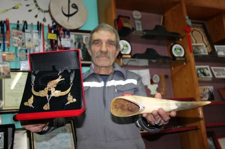 Atışan, pırlanta işçiliğini de boynuza uyguladığını, ortaya çıkan eserlerin gayet güzel ve enfes ürünler olduğunu belirterek, ''Benim kullandığım sığır boynuzu. Çok nadir manda boynuzu kullanıyorum. Kullanılan bir sığır boynuzunun bir dokusu ve rengi Cenab-ı Allah insanları nasıl tek yaratmışsa parmak izleri farklıysa, hayvanın kafasının üstündeki boynuzun dokuları da değişik ve birbirine benzemiyor. Her yapılan bir ürün her yapılan bir eser dünya üzerinde tektir'' diye konuştu.