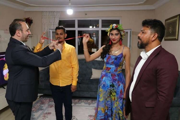Nikah ve düğün kısıtlamalarının kaldırılması ile birlikte nikah, nişan ve söz merasimleri de başladı. Bu kapsamda Bağlarbaşı Mahallesi’nde Yalova Romanlar Derneği Başkanı Hüseyin İleri'nin oğlu Hasan İleri ile Aslı Karabulut’un söz merasimine katılan Yalova Belediye Başkan Vekili Mustafa Tutuk genç çiftin mutluluğuna ortak oldu. Mahalleye gelişinde kalabalık bir grup tarafından karşılanan Tutuk söz merasiminin gerçekleştirileceği eve geçti. Burada İleri ve Karabulut ailelerini kutlayan Tutuk genç çifte de bir ömür mutluluklar diledi. Ardından Hasan İleri ve Aslı Karabulut çiftinin söz yüzüklerini takan Yalova Belediye Başkan Vekili Mustafa Tutuk, “Çok kutsal bir müessese olan ailenin kurulmasındaki ilk adımı atıyorsunuz. Allah devamına erdirsin ve inşallah bir yastıkta kocayın. Unutmayın ki evlilik ve bir yuva kurmak toplumun devamı açısından önemlidir. Sizde toplumun değerlerine uygun bir aile oluşturup toplumuz için yararlı olacak evlatlar yetiştirin” tavsiyelerinde bulundu.