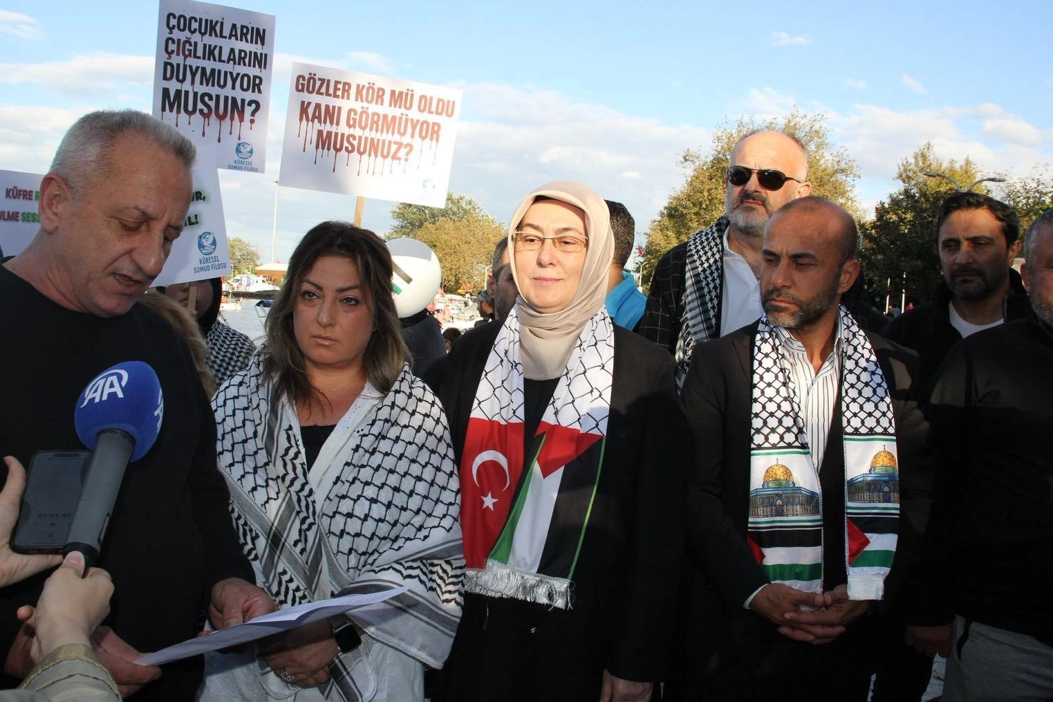 Etkinlik sonunda Türk ve Filistin bayraklarıyla donatılan gemi ve tekneler Marmara Denizi’ne açılarak destek turu attı. Vatandaşlar ellerindeki dövizler ve Filistin bayrakları ile Gazze’ye dayanışma mesajı verdi.