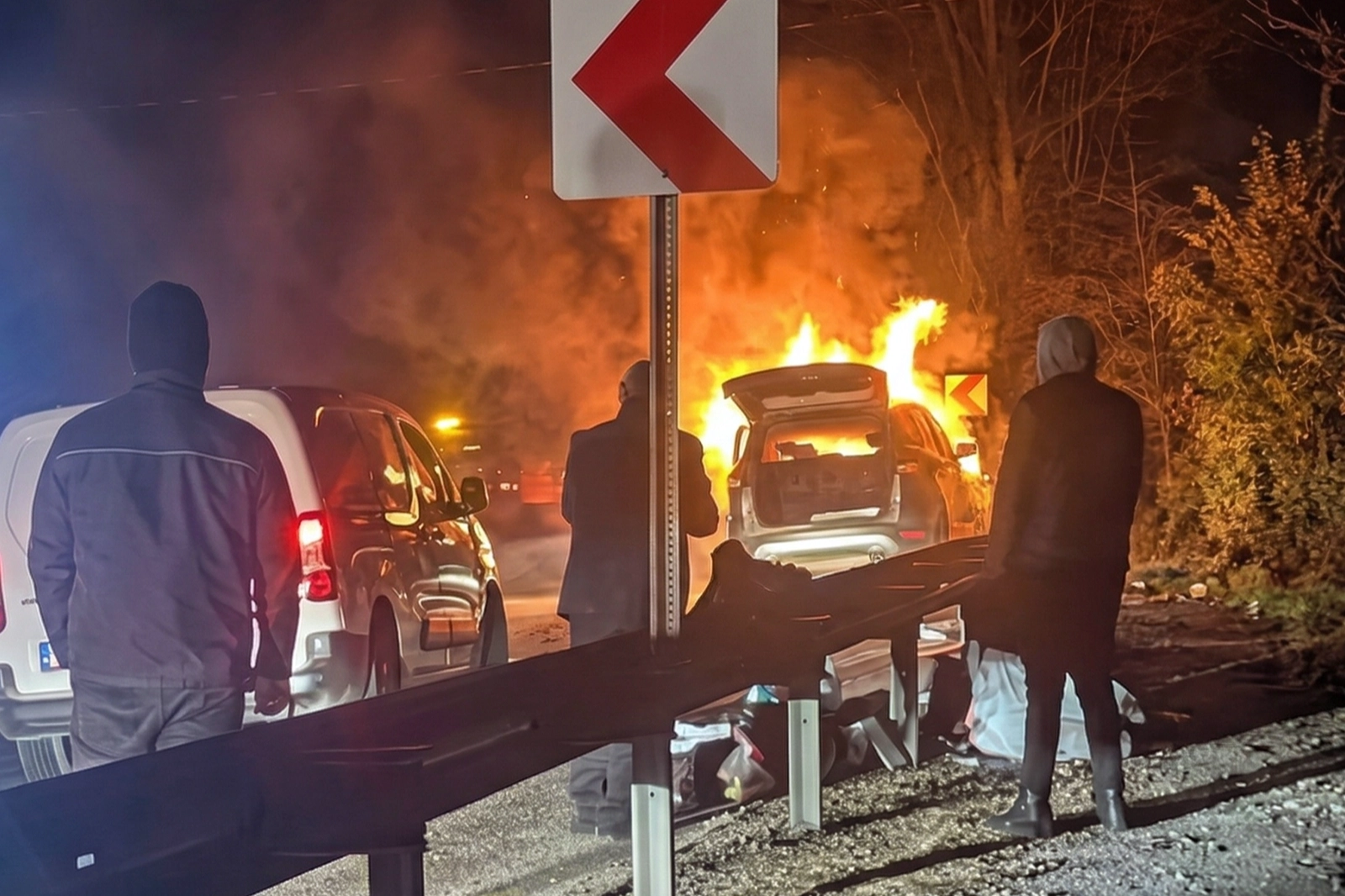 Motor kısmında başlayan yangın, rüzgarın da etkisiyle saniyeler içinde büyüyerek otomobilin tamamını sardı. Olay yerine ulaşan itfaiye ekipleri, alevlere müdahale ederek yangını kontrol altına aldı. Uzun uğraşlar sonucu söndürülen yangın sonrası soğutma çalışmaları gerçekleştirildi. Yangın nedeniyle karayolunda trafik akışı bir süreliğine kontrollü olarak sağlandı.