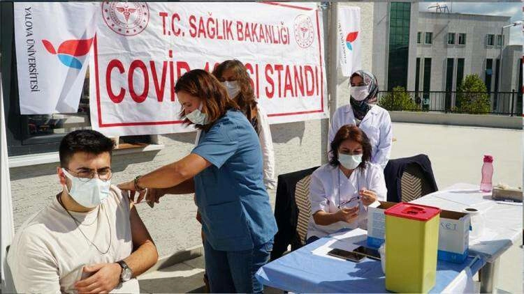 Yalova İl Sağlık Müdürlüğü ve Yalova Üniversitesi Sağlık, Kültür ve Spor Daire Başkanlığı Medico Sosyal Sağlık Merkezi’nin ortak çalışması kapsamında Yalova Üniversitesi Merkez Yerleşkesinde bulunan Öğrenci Yaşam Merkezinde aşı standı kuruldu. Toplamda 91 öğrenicinin tercihleri doğrultusunda Biontech veya Sinovac aşıları yapıldı. Aşı rakamlarının artışında hem İl Sağlık Müdürlüğü personeli hem de Medico Sosyal Sağlık Merkezi çalışanlarının ikna çalışmalarının çok büyük rol oynadığını vurgulayan Medico Sosyal Sağlık Merkezi Doktoru Metin Sabuncu, aşı konusunda tereddütleri olan, bilgi almak isteyen, yan etkileri hakkında endişeli olan öğrencilerimizin Yalova Üniversitesi Medico Sosyal Sağlık Merkezi’nden destek alabileceklerini belirtti. Dr. Sabuncu, deniz otobüsleri ve şehirlerarası ulaşımda uygulanan aşı şartı uygulamasının da etkisiyle üniversitemizde aşılı öğrenci oranının çok yüksek olduğunu vurguladı.