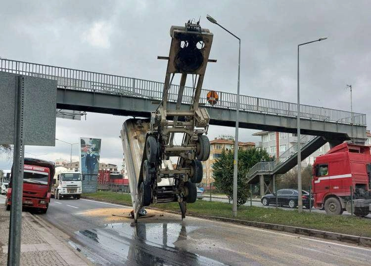 Yalova ve Çiftlikköy ilçesinde peş peşe meydana gelen 2. Dorse kazası da her hangi bir ölüm ya da yaralanma yaşanmadan atlatıldı. Edinilen bilgiye göre Çiftlikköy istikametinden Yalova istikametine gitmekte olan bir kamyon sürücünün unutkanlığı nedeni ile dorsesi açık olarak ilerliyordu. Atatürk Bulvarı’nda bulunan üstgeçidin altından geçmek isteyen aracın açık dorsesi hızla geçide çarptı. Çarpmanın etkisi ile kamyon adeta şahlanarak havada asılı kaldı. Olayda 7 araç ise bir birine girse de her hangi bir ölüm ya da yaralanma yaşanmadı. Olay sonrasında güzergah aracın asılı kaldığı yerden kurtarılması için kısa süreliğine trafiğe kapatıldı. Bir çekici marifeti ile kamyonun dorsesinin kurtarılması ve aracın yoldan çekilmesi sonrasında trafik normale döndü. Olayla ilgili tahkikat başlatıldı.