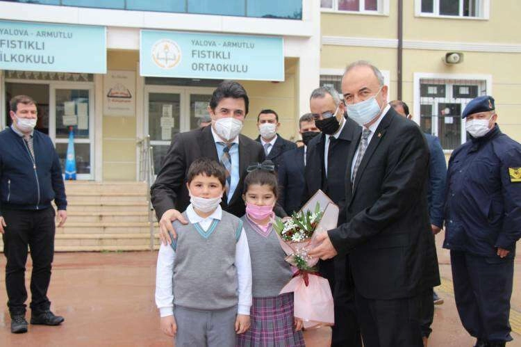 Vali Erol, brifingin ardından Fıstıklı İlk ve Ortaokulu ziyaret ederek okuldaki eğitim öğretim faaliyetleri hakkında bilgi aldı. Ziyarette öğrencilerle de görüşerek başarılar diledi. Ziyaret sırasında Vali Erol’a, Armutlu Kaymakamı Abdulselam Öztürk, İlçe Jandarma Komutanı Süleyman Eski, Yalova Millî Eğitim Müdürü Dr. Abdülaziz Yeniyol, Armutlu İlçe Milli Eğitim Müdürü Ömer Faruk Dursun, Armutlu Fıstıklı Muhtarı Tacettin Yıldıran ve şube müdürleri de eşlik etti.