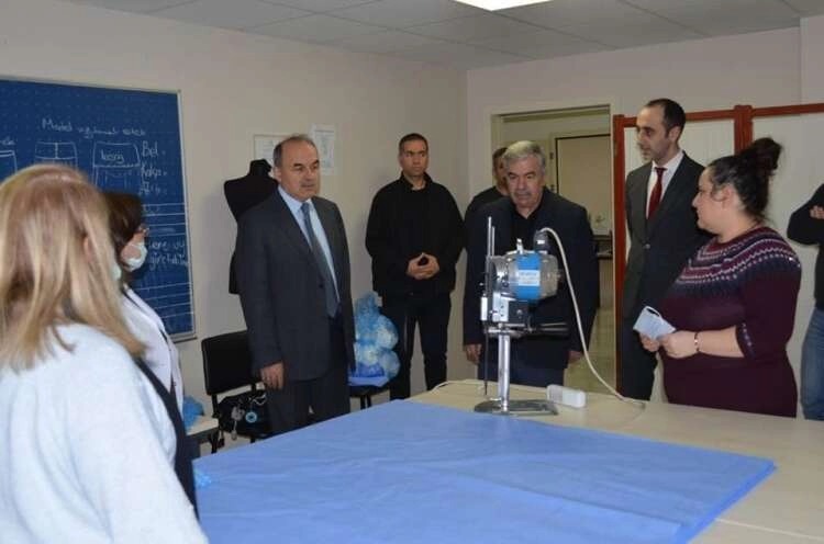 Yalova Halk Eğitim Müdürlüğü tarafından sağlık çalışanları için üretilmeye başlanan maske ve tulumlar ilin her yerine ulaştırılıyor. Bu kapsamda Yalova Valisi Muammer Erol ve Yalova Sağlık İl Müdürü Emrah Eren de Halk Eğitim Müdürlüğü’nü ziyaret ettiler. Valie Erol’u kuruma gelişinde Yalova Halk Eğitim Merkezi Müdürü Sadrettin Doğan karşıladı. Ardından maske ve tulum üretilen atölyeleri gezen Yalova Valisi Muammer Erol burada gönüllü olarak üretim yapan usta öğreticilere teşekkür etti. Ülkenin ve Yalova’nın zor günlerden geçtiğini hatırlatan Vali Erol Türk halkının böyle günlerde her zaman birlik ve beraberlik olmayı başardığını ifade etti. Çalışmalar hakkında Yalova Halk Eğitim Müdürü Sadrettin Doğan’dan bilgiler alan Vali Erol gereken tüm desteğin sağlanacağının da altını çizdi.