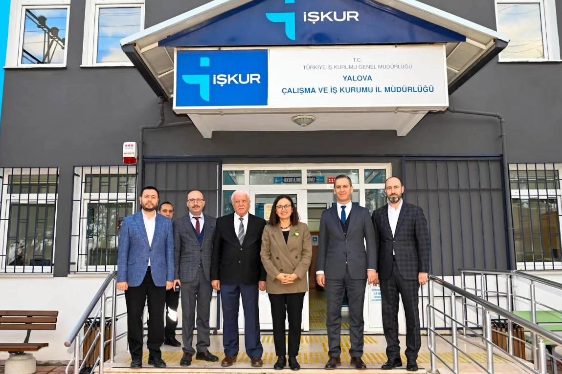 Yalova Valisi Dr. Hülya Kaya, İŞKUR Yalova İl Müdürlüğü’nü ziyaret ederek kurumun faaliyetleri hakkında bilgi aldı. Kuruma gelişinde İŞKUR Müdürü Erhan Dede tarafından karşılanan Vali Kaya Dede’nin makamına geçti. İŞKUR Müdürü Erhan Dede burada, Kaya’ya kurumun çalışmaları, projeleri, hizmetleri ve istatistikleri hakkında sunum yaptı. Kaya, sunumun ardından Dede’ye sorular sorarak görüşlerini paylaştı. Yalova Valisi Dr. Hülya Kaya, İŞKUR’un istihdam anlamında çok önemli bir görev üstlendiğini belirterek, “İŞKUR, iş arayanlarla işverenleri buluşturan, iş gücü piyasasının ihtiyaçlarına göre mesleki eğitim ve danışmanlık hizmetleri veren, işsizlik sigortası ve işsizlik ödeneği gibi sosyal koruma mekanizmalarını yürüten bir kurumdur. İŞKUR, hem ekonomik hem de sosyal kalkınmamızın lokomotifidir. Bu nedenle, İŞKUR’un çalışmalarını yakından takip ediyor ve destekliyoruz.” dedi.