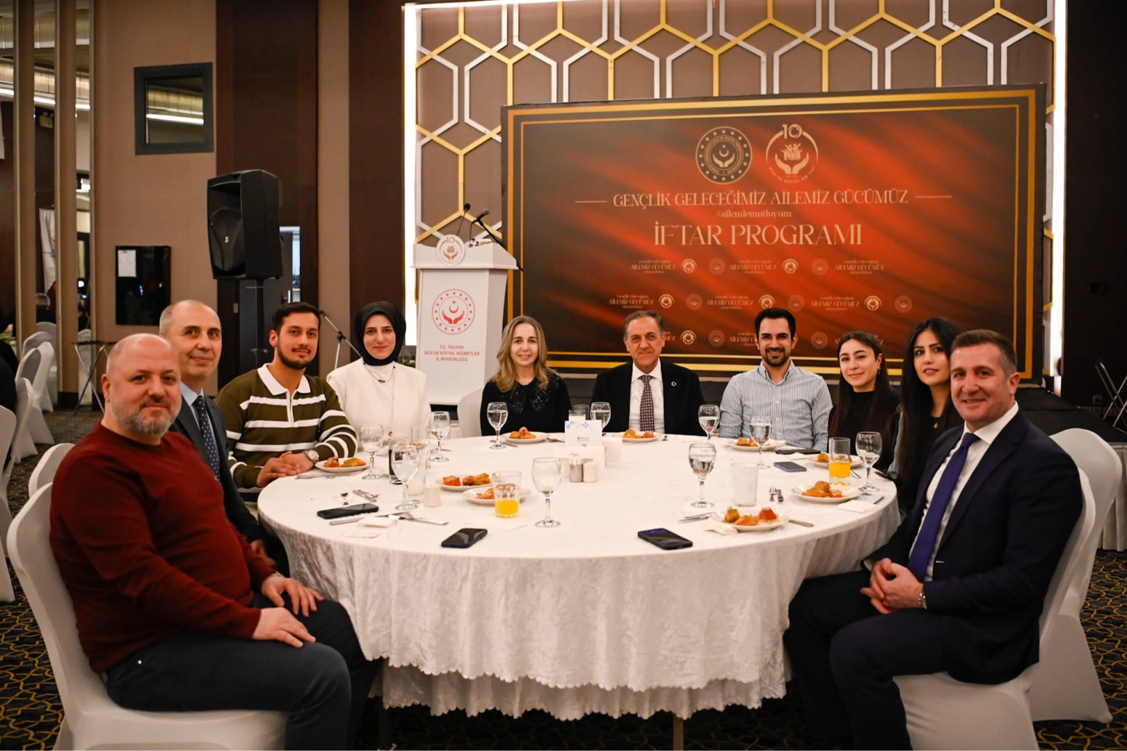 Yalova Aile ve Sosyal Hizmetler İl Müdürlüğü, "Aile ve Nüfus 10 Yılı" vizyonu kapsamında hayata geçirilen Evlenecek Gençlerin Desteklenmesi Projesi çerçevesinde anlamlı bir etkinliğe imza attı. Ramazan ayının manevi atmosferini yaşatmak amacıyla 26 Şubat 2026 tarihinde kentteki bir otelde Aile Buluşmaları İftar Programı gerçekleştirildi. Düzenlenen programa Yalova Valisi Dr. Ahmet Hamdi Usta eşi Şerife Usta ile katılırken, İl Müdürü Arif Laçin eşi Çağrı Laçin ile birlikte yer aldı. Aile ve Gençlik Fonu kapsamında kredi desteğinden yararlanan genç çiftler de iftar sofrasında protokol üyeleriyle bir araya geldi.