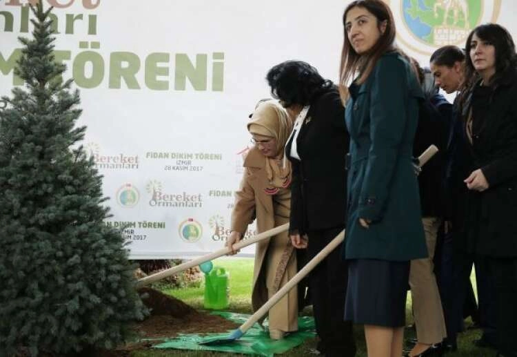 Emine Erdoğan, 'Bereket Ormanları Projesi' ile yurdun dört yanında 500 bine yakın fidan dikildiğini, klasik orman ağaçlarının yanı sıra ekonomik getirisi olan türlerin yetiştiğini belirterek, sözlerini şöyle sürdürdü: