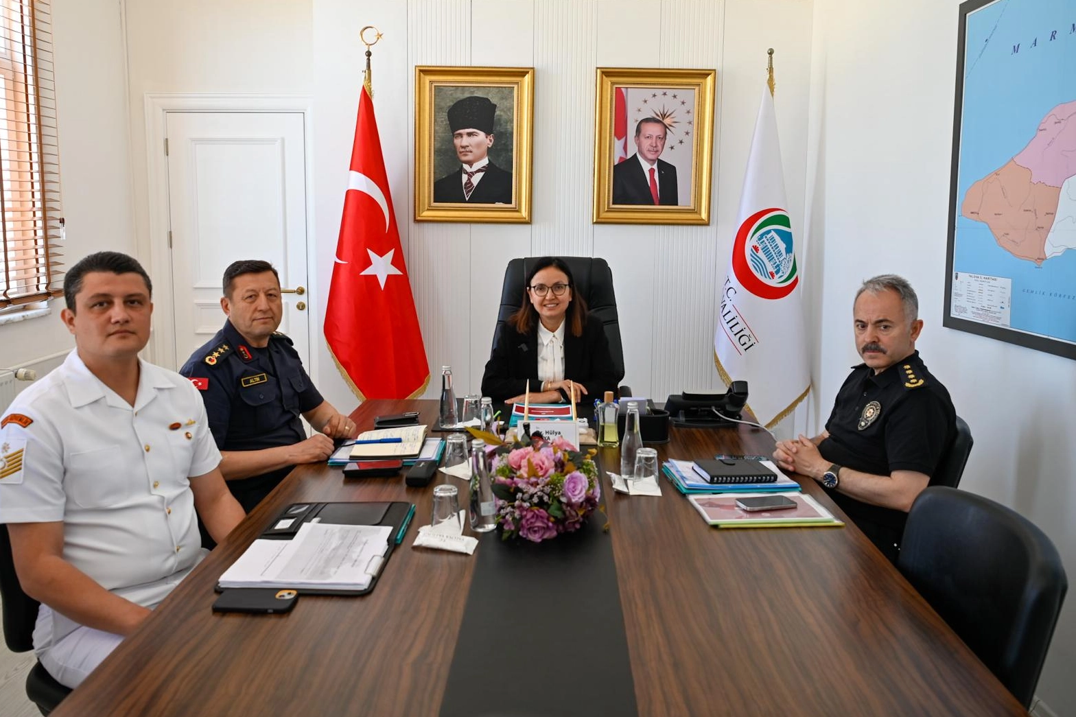 Yalova’da her ay düzenli olarak gerçekleştirilen Asayiş ve Güvenlik Değerlendirme Toplantısı, Nisan ayında da Yalova Valisi Dr. Hülya Kaya’nın başkanlığında yapıldı. Sosyal medya üzerinden canlı olarak kamuoyuyla paylaşılan toplantıya İl Jandarma Komutanı Jandarma Kıdemli Albay Ercan Altın, İl Emniyet Müdürü Ümit Bitirik ile Sahil Güvenlik TCSG-17 Komutanı SG. Gv. Astsubay Kıdemli Üstçavuş Eren Deneri de katıldı.