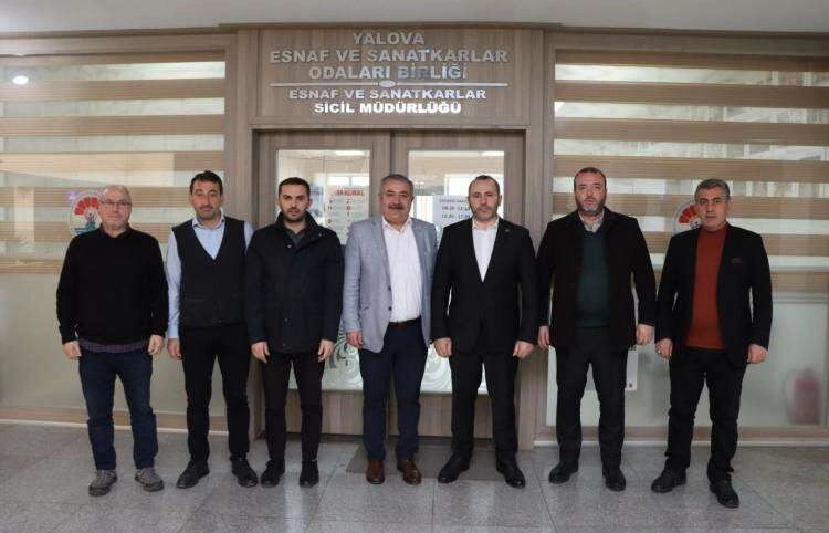 Yalova Belediye Başkanı Mustafa Tutuk, Yalova Belediye Başkan Yardımcıları Fatih Şahin ve Bahaddin Erbay ile birlikte Yalova Esnaf ve Sanatkarlar Odaları Birliği (YESOB)'u ziyaret etti. Tutuk ve beraberindekileri YESOB Başkanı Mustafa Bozkurt karşıladı.