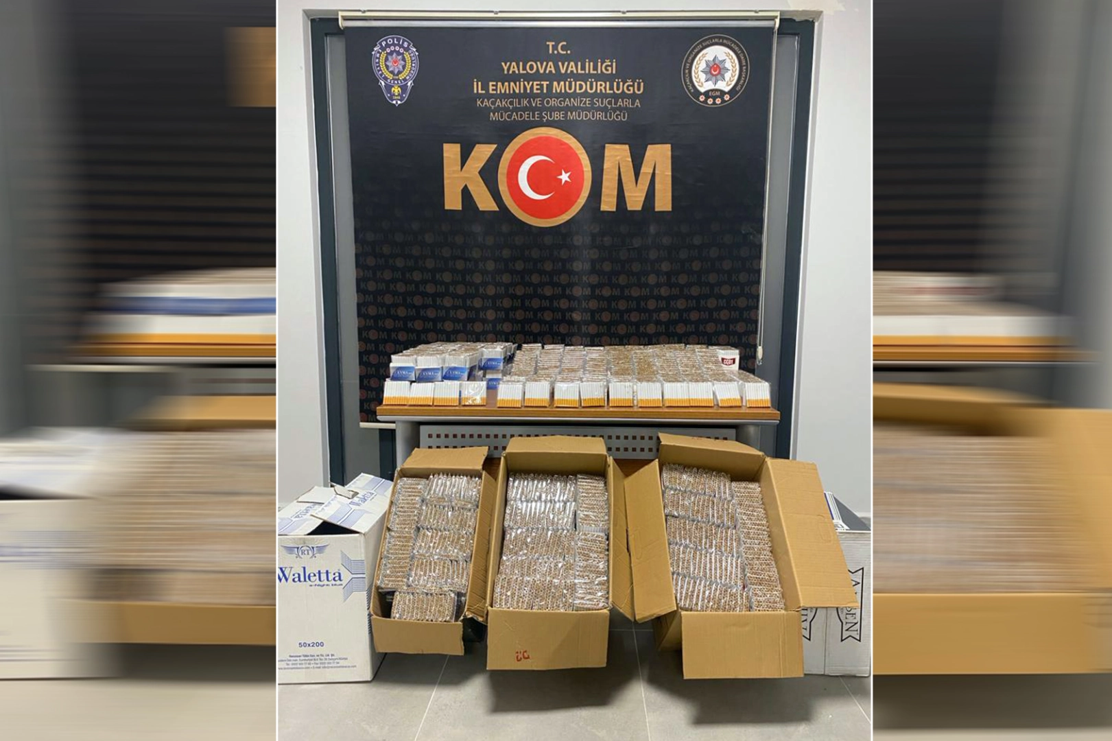 Yalova Emniyet Müdürlüğüne bağlı Kaçakçılık ve Organize Suçlarla Mücadele Şube Müdürlüğü, il genelinde kaçakçılıkla mücadele için analiz ve araştırma çalışmaları yürüttü. Bu çalışmalar sonucunda, Yalova’ya kaçak sigara getirdiği belirlenen S.A. isimli şahsın 06… plakalı aracı durduruldu. Yapılan aramada, aracın bagajında çeşitli markalarda kıyılmış tütünle doldurulmuş 46 bin 200 adet makaron ele geçirildi. Makaronların piyasa değerinin yaklaşık 100 bin lira olduğu tahmin ediliyor.