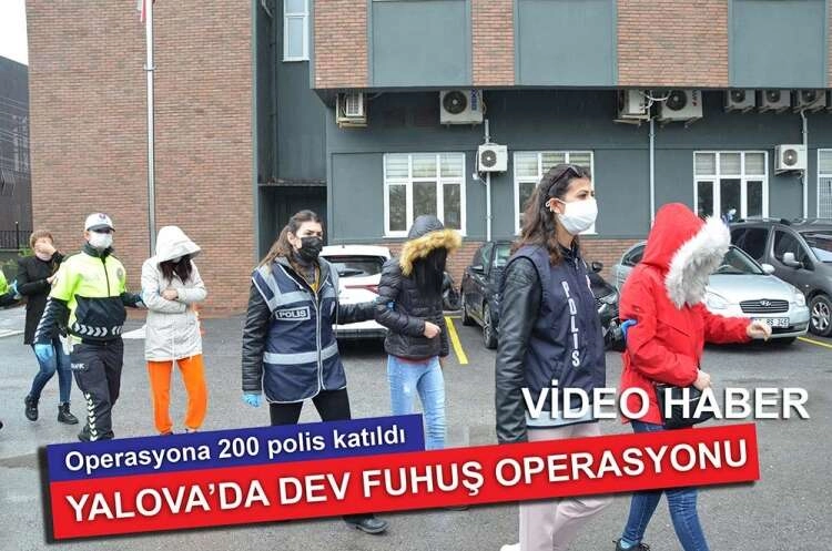 Yalova Emniyet Müdürlüğü KOM Şubesi Altınova ilçesinde fuhuş yapıldığı istihbaratı üzerine düğmeye bastı. Öncelikle belirlenen 2 mekanda fiziki takip gerçekleştirildi. Gerekli bilgilerin elde edilmesi ile birlikte fuhuş operasyonunun startı verildi. Operasyona çeşitli şubelerden toplamda 200 polis katıldı. Mekanlara eş zamanlı olarak bir çok noktadan baskın düzenlendi. Mekanlarda fuhuş amaçlı bulunan 12’si Türk, 19’u çeşitli ülkelerden toplamda 31 kadın yakalandı. Yine mekanda bu kadınların fuhuş yapmasına aracılık ettikleri tespit edilen 16 şüpheli yakalanırken 2 şüpheli ise firari olarak aranmaya başlandı. Operasyon düzenlenen mekanlarda yapılan aramada ayrıca 2 ruhsatsız av tüfeği, 128 gram uyuşturucu madde ve 6 şişe sahte içki ele geçirildi. Yalova Emniyet Müdürlüğü’ne getirilerek sorgu işlemleri tamamlanan kadınlardan yabancı uyruklu olan 19’'u hakkında sınır dışı edilme kararı alındı.