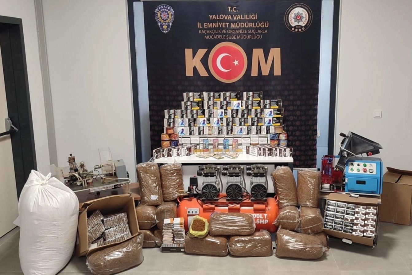 Alınan bir istihbaratı değerlendiren Yalova Emniyet Müdürlüğü KOM Şube ekipleri fiziki ve teknik takip yaparak gerekli belgeleri topladılar. Ardından düğmeye basan ekipler Yalova merkez, Altınova ilçesi ve Kocaeli'nin Gölcük ilçesini kapsayan 12 ayrı adrese eş zamanlı operasyonlar düzenledi. Gerçekleştirilen operasyonlar kapsamında yapılan aramalarda: 186 bin 610 adet dolu makaron, 113 bin 400 adet boş makaron, 155 kilogram kıyılmış tütün, 17 adet elektronik sigara kartuşu, 2 adet sigara dolum makinesi, 1 adet sanayi tipi kompresör, 4 adet elektronik sigara, 5 paket pipo tütünü ve 32 kutu nargile aroması ele geçirildi.
