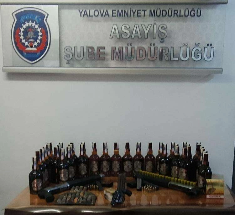 Yalova Emniyet Müdürlüğü Asayiş Şube Müdürlüğü ekipleri, son günlerde özellikle düğün gibi etkinlikler esnasında meskûn mahalde ateşli silahla havaya ateş edildiği ve silah atış sesleri geldiği yönünde 112 Acil Çağrı Merkezine 35 farklı ihbarlarda bulunulduğunu tespit etti. Ekipler, park edilmiş araçlara ve vatandaşlara yorgun mermi isabet ettiği, bu nedenle mala zarar verme ve yaralanma olaylarının meydana geldiği bilgisine ulaştı. Bu doğrultuda harekete geçen Asayiş Şube Müdürlüğü ekipleri, Bağlarbaşı Mahallesi ve çevresinde belirlenen adreslerde operasyon düzenledi. Gerçekleştirilen operasyonda; 2 adet 9mm ruhsatsız tabanca, 1 adet kısa namlu tüfek, 2 adet ruhsatsız av tüfeği, 1 adet kurusıkı tabanca, 78 adet tabanca mermisi, 33 adet av fişeği kartuşu, 36 adet Chivas marka sahte bandrollü alkollü içecek ele geçirildi. 6136 sayılı Ateşli Silahla ve Bıçaklar Hakkında Kanunu kapsamında A.F., C.Ö., Y.Y., A.M., S.K. isimli şüpheli 5 şahıs gözaltına alınarak hakkında adli ve idari işlem başlatıldı.