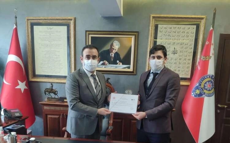 Belgeyi Yalova Çevre ve Şehircilik İl Müdürü Ümit Yılmaz, Yalova Emniyet Müdürü Hakan Fındık’a takdim etti.