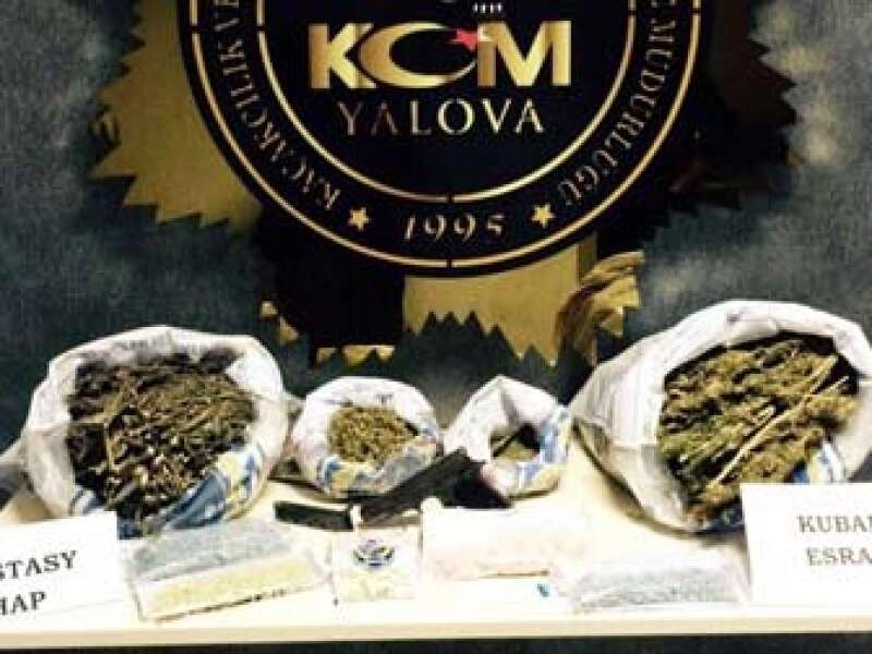 Operasyonda 7 kilo 785 gram kubar esrar, 511 adet ekstazi adı verilen uyuşturucu hap, 44 gram bonzai, 5 bin 937 adet gümrük kaçağı sigaranın yanı sıra ruhsatsız tabancalar ve tüfek ele geçirildi. Alınan bilgiye göre; Yalova Emniyet Müdürülüğü Kaçakçılık ve Organize Suçlarla Mücadele Şubesi (KOM) ekipleri 5 aylık teknik takip sonucu 22 şüpheli şahıs tespit etti. Şahısların yakalanması ve suç unsurlarının ele geçirilmesi düğmeğe basan polis, Yalova’da 22, Bursa’da 2 ve İzmir’de 1 olmak üzere 25 adreste eş zamanlı operasyon düzenlendi. 200 polisin katıldığı operasyonda 21 kişi gözaltına alındı. Yakalanan şahısların evleri, araçları ve üzerlerinde yapılan aramalarda; 7 kilo 785 gram kubar esrar, 511 adet ekstazi adı verilen uyuşturucu hap, 44 gram bonzai, 5 bin 937 adet gümrük kaçağı sigara, 1 kama, 3 adet kuru sıkı tabanca, 1 adet otomotaik av tüfeği, tüfeğe ait 2 şarjör, 1 tabanca şarşörü, 10 adet mermi, ele geçirildi. Zanlılar emniyette yapılan sorgularının ardından Yalova Adliyesi’ne sevk edildi.
