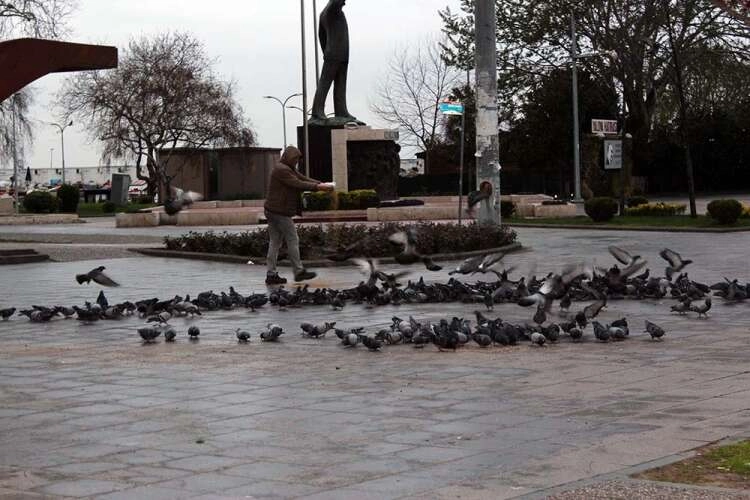 Yalova’da özellikle Osmanlı Parkı’nda yoğunlaşan güvercinler, vatandaşların Koronavirüs tedbirleri kapsamında dışarıya çıkamaması nedeniyle son günlerde karınlarını doyurmakta zorluk çekiyorlar. Bu noktada yiyecek bulabilecekleri ve insanların bulunduğu yerlere gelen kuşlara ise İskele Taksi de ki sürücüler sahip çıktılar. Aldıkları yemleri düzenli olarak kuşlara veren ve onların hayatta kalmasına yardımcı olan şoförler, “İnsanlar dışarıya çıkmayınca bu kuşlara yem atacak kimse de kalmadı. Hal böyle olunca meydana gelmeye başladılar. Biz de her sabah aldığımız yemlerle onları besliyoruz. Hayat normale dönene kadar kuşları beslemeyi sürdüreceğiz” dedi.