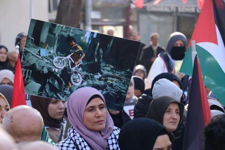 Yalova’da sivil toplum kuruluşlarının ortaklaşa düzenlendiği yürüyüş, Cevdet Aydın Parkı'ndan başladı. Burada grup adına basın açıklamasını okuyan Ramazan Yıkılmaz, Gazze'de insan hakları ve savaş hukukunun hiçe sayıldığını; çocuk, kadın, yaşlı ve sivil ayırt etmeksizin insanların katledildiğini belirtti. İsrail'in saldırıları nedeniyle şu an Gazze'nin güvenli bir yer olmadığını dile getiren Yıkılmaz, “Camiler, hastaneler, okullar ve sivil yerleşim yerleri siyonistlerin hedefinde. Beyaz bayrak açan siviller dahi üzerlerine ateş açılarak katlediliyor. İşgalciler, kullanılması uluslararası sözleşmelerce yasaklanmış bombaları Gazze'ye yağdırıyor. İnsanlık tarihinde örneğine az rastlanır bir zulüm, tüm dünyanın gözleri önünde yaşanıyor” dedi.