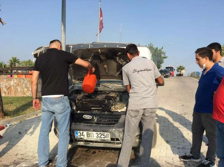 Bir kargo firmasına ait 34-BB-328 plakalı araç Yalova’nın Çiftlikköy ilçesi Bayraktepe tesisleri önünde motor bölümünden yanmaya başladı. Motordan çıkan dumanları fark eden araç sürücüsü yangın tüpü ile yangına müdahale etti. Ancak yangın tüpleri motor kısmındaki yangını söndüremeden bitti. Araçtaki yangının büyüyeceği telaşı ile su aramaya başlayan sürücünün yardımına çevredeki vatandaşlar yetişti. Ellerine aldıkları pet şişelerdeki suları aracın motor aksamına dökerek söndürdüler. Aracın motorunda büyük hasar gelirken her hangi bir yaralanma yaşanmadı. Hasarlı araç olay yerine çağrılan başka bir araçla çekildi.